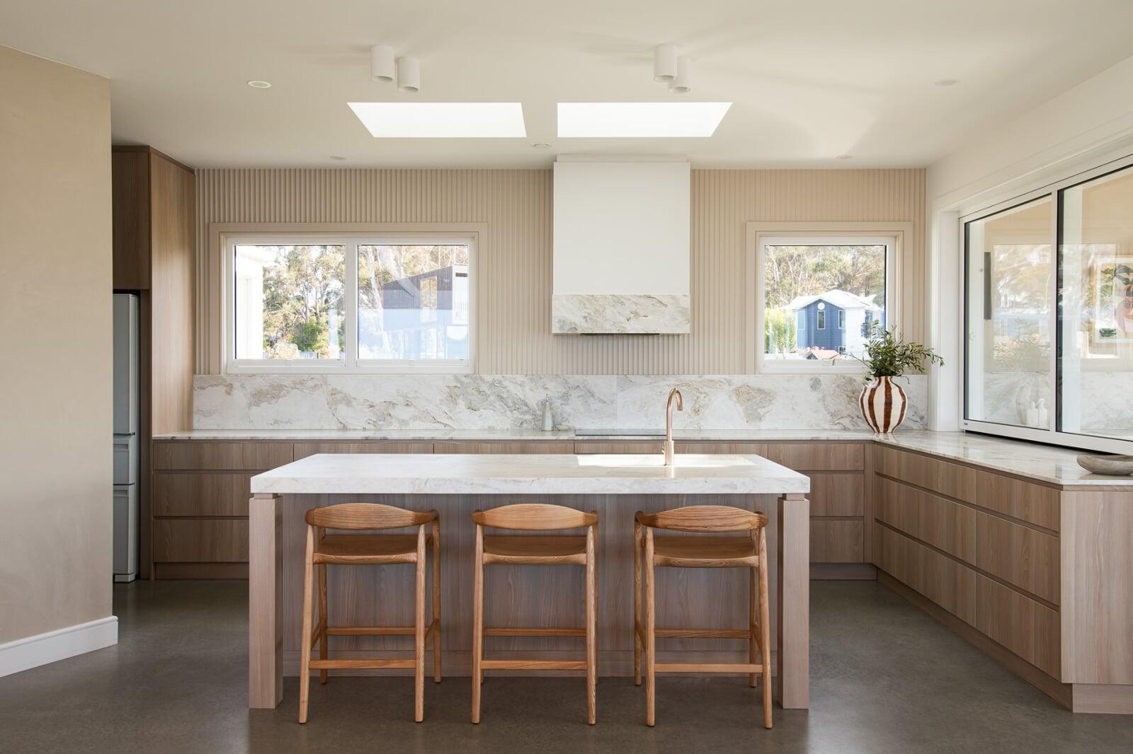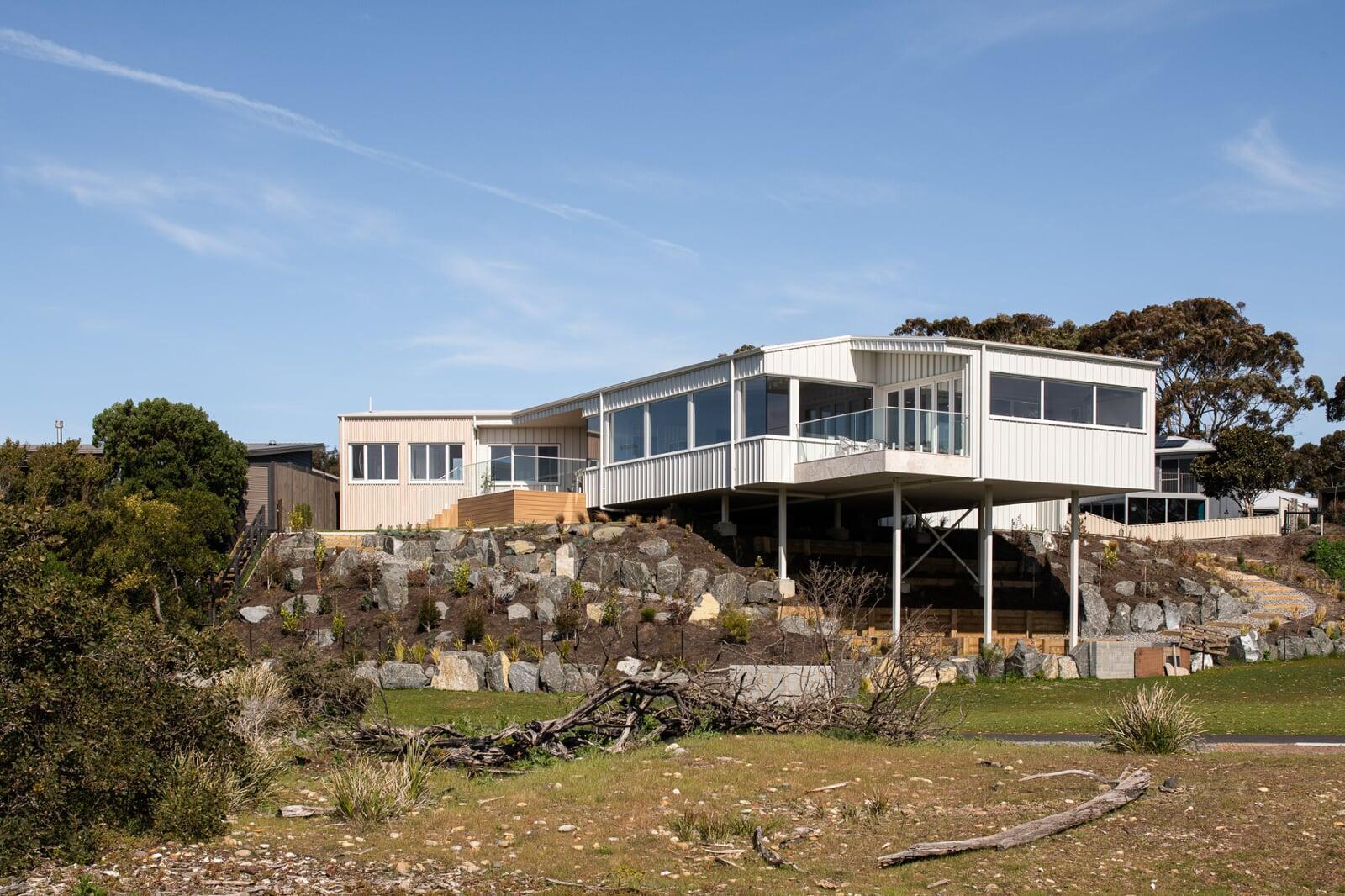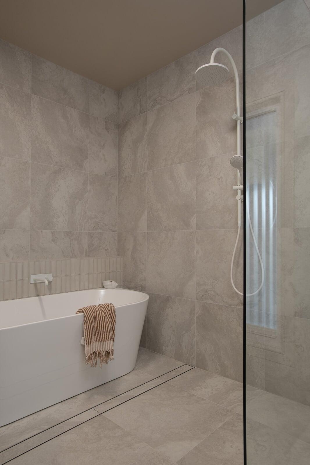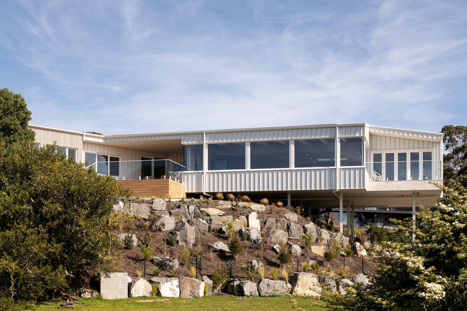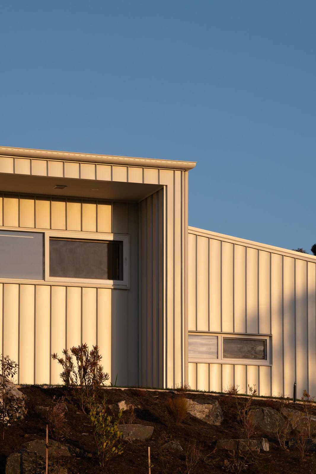 The vertical cladding and stone work at the entry creates a contemporary welcome to the home.