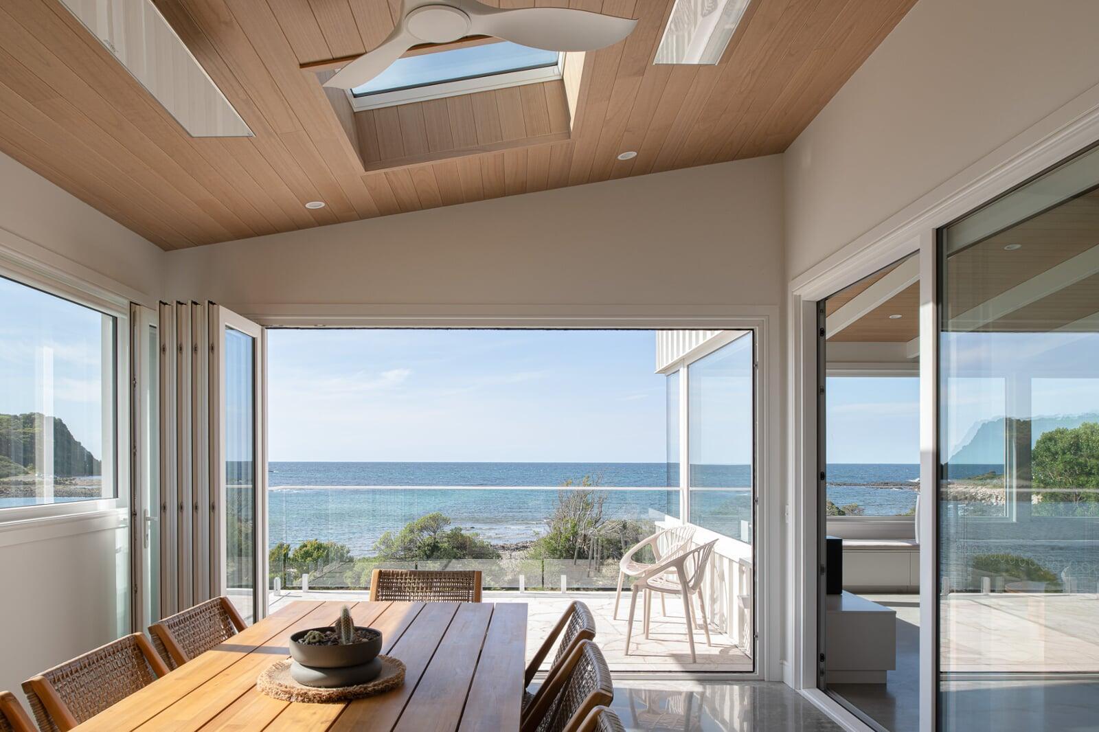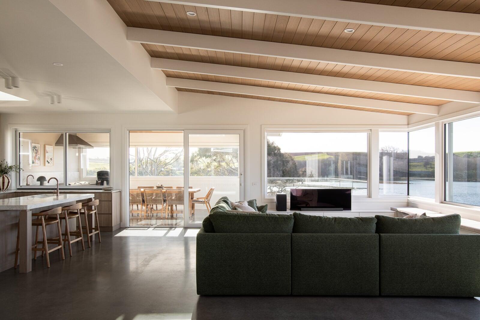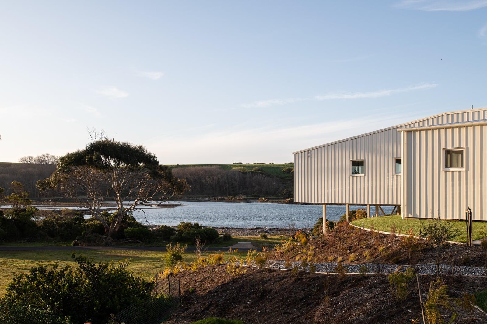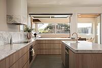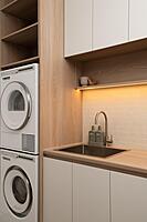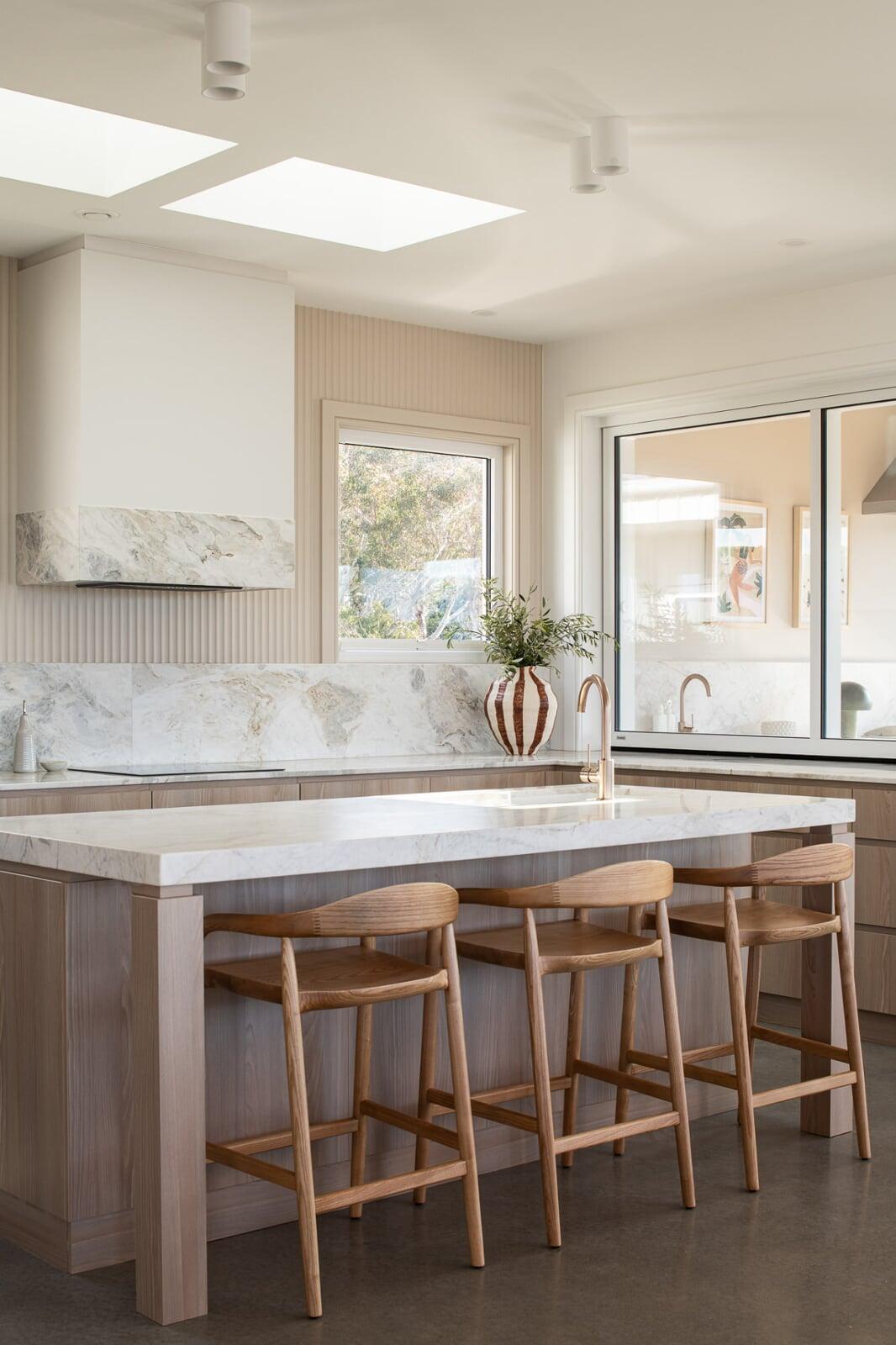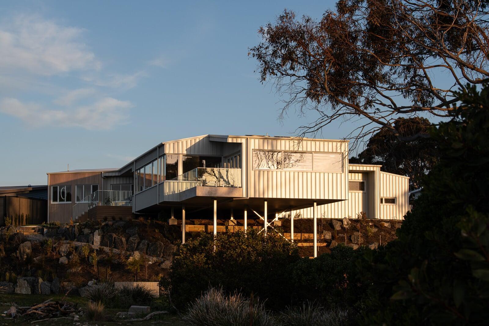 The vertical cladding and stone work at the entry creates a contemporary welcome to the home.