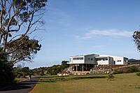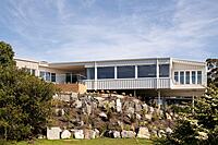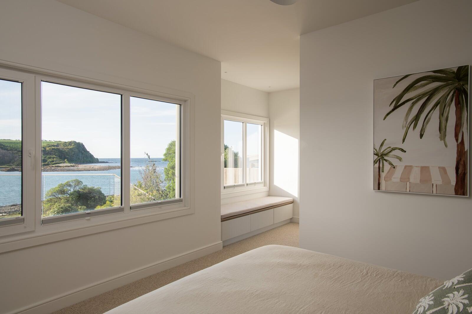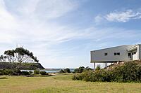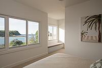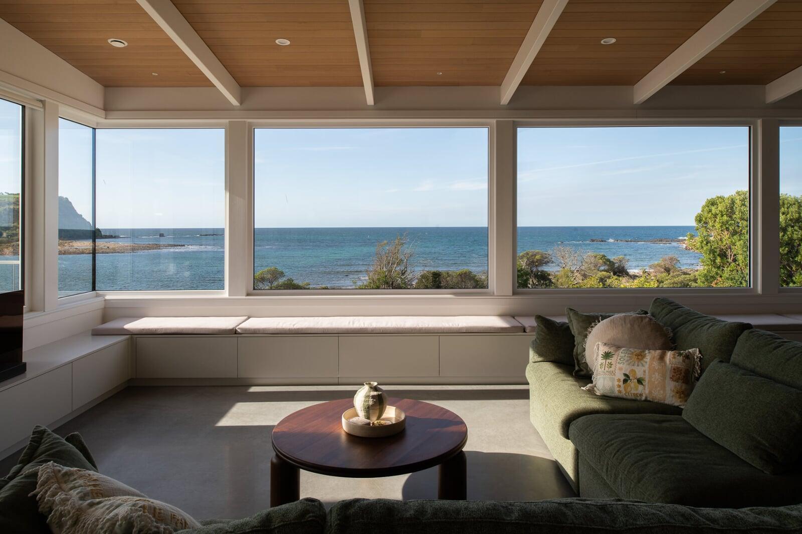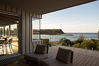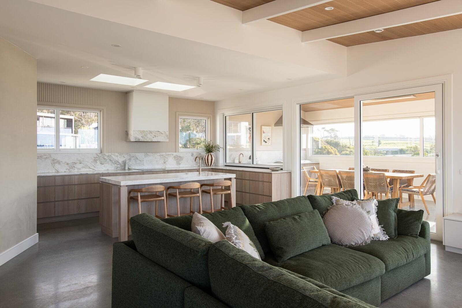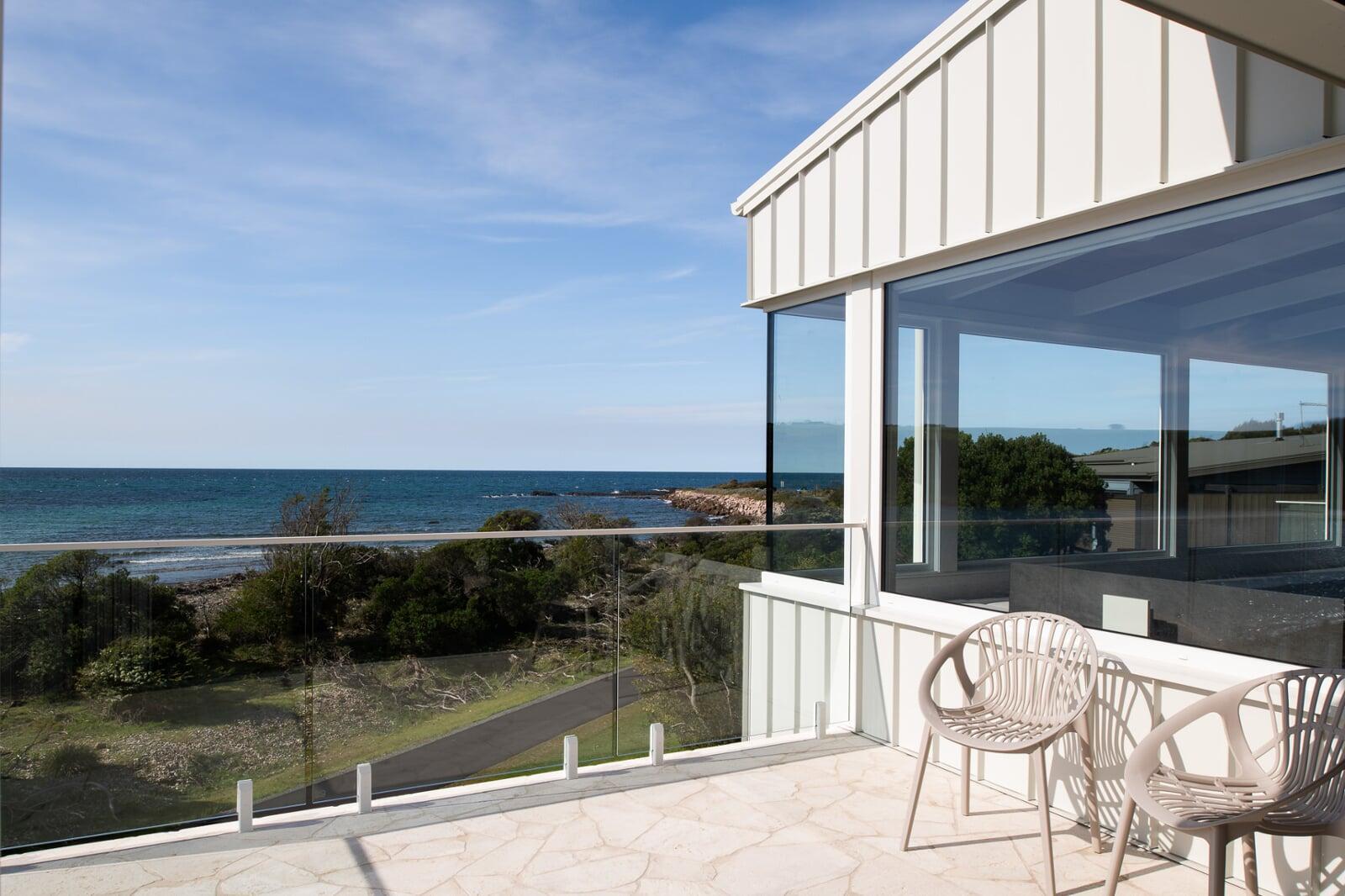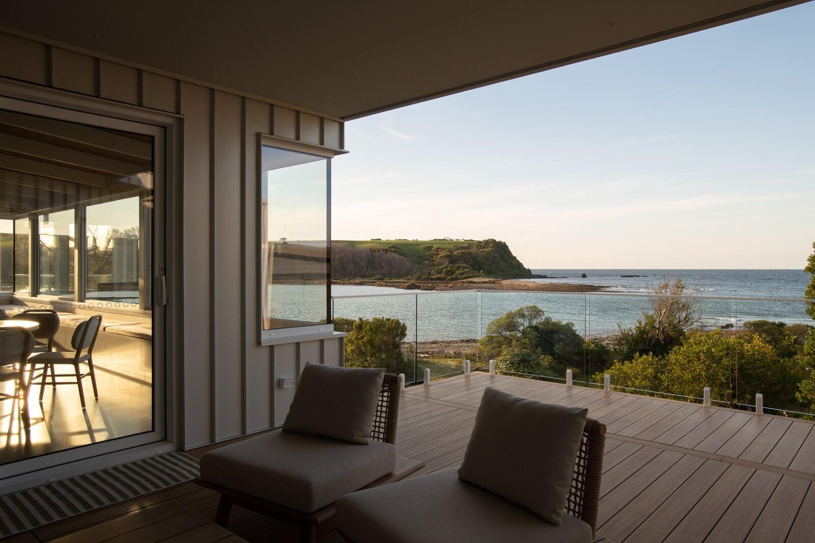 The vertical cladding and stone work at the entry creates a contemporary welcome to the home.